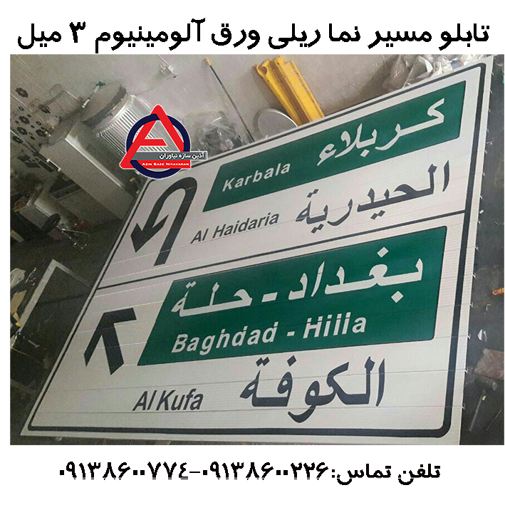 شکل تابلومربع, مستطیل افقی, مستطیل عمودی نوع تابلو راهنمای مسیر جنس آلومینیوم, ورق روغنی سرد, ورق گالوانیزه گرم ابعاد, طبق سفارش مشتری ضخامت تابلو۱ تا ۱.۲۵ میلی متر, تابلو های ورقه ای نسبت به درخواست مشتری رنگ فریم تابلوخاکستری, سفید نوع شبرن گرده مهندسی, لانه زنبوری برند شبرنگavery آمریکا, اورافول آلمان, یونیورس چین طول عمر شبرنگ۱۰ ساله, ۷ ساله متعلقات همراه بست, پیچ, مهره