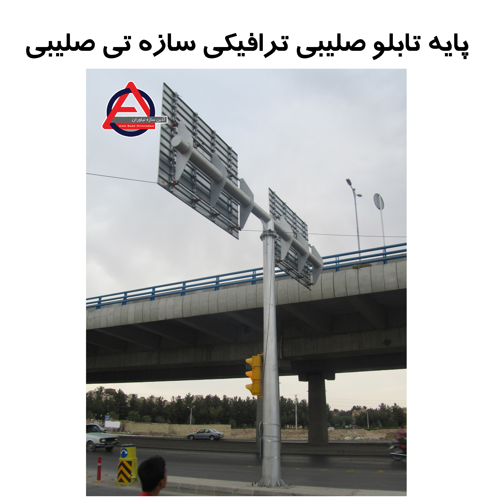 یکی دیگر از محصولات آذین سازه از دسته بندی پایه تابلو و سازه های ترافیکی پایه تابلو صلیبی ( سازه T صلیبی) می باشد.