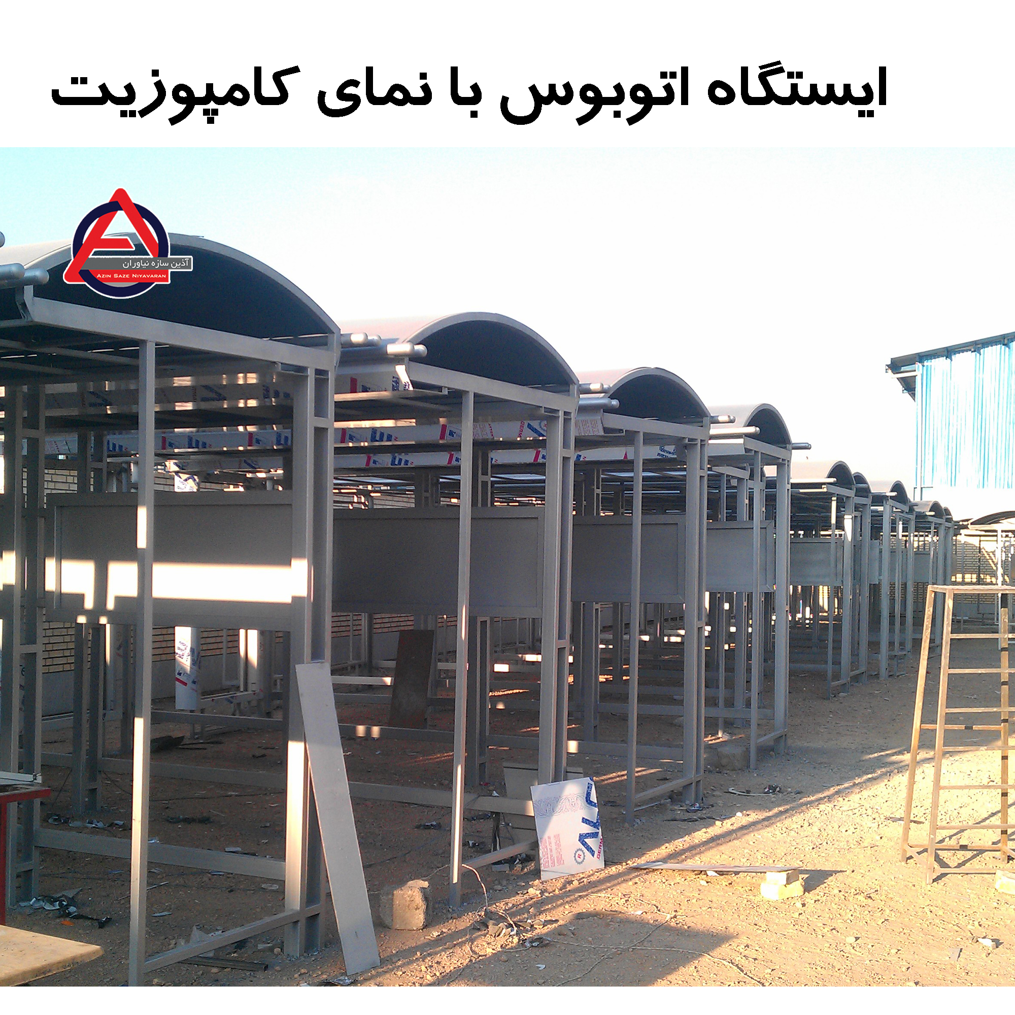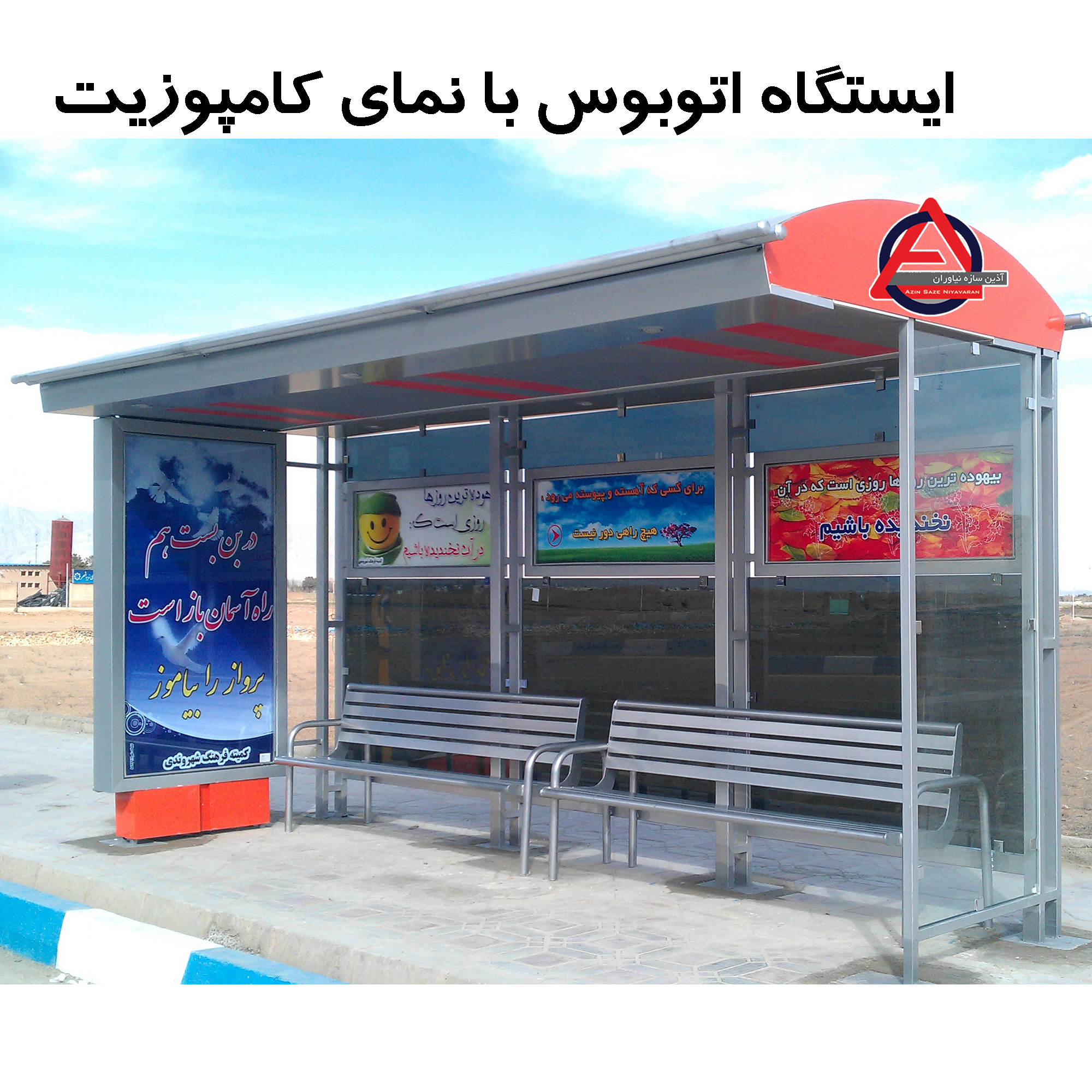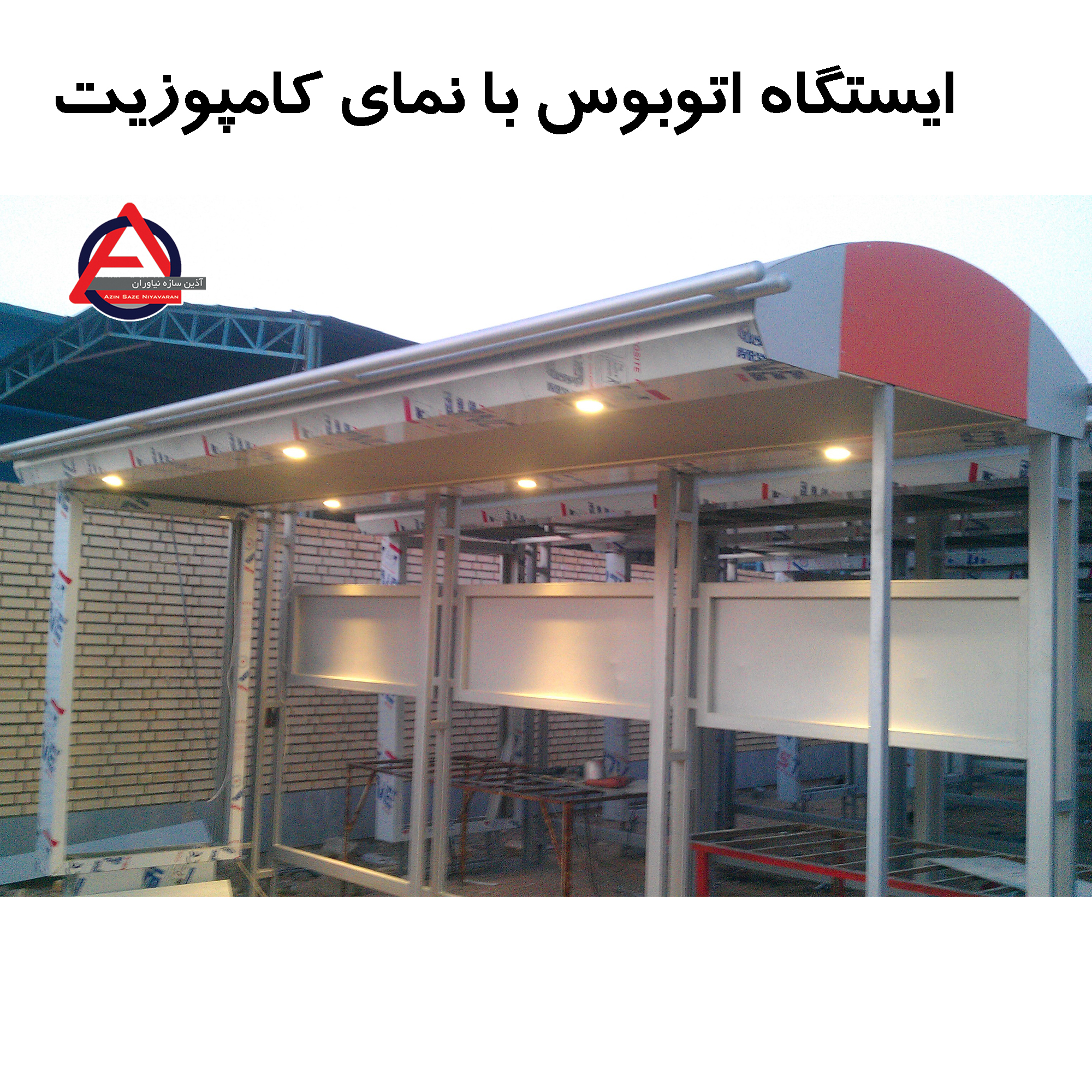 مشخصات فنی:طول ایستگاه 5متر-کلاف اصلی تابلو ازپروفیل-شیشه های سکوریت 10میلیمتر-سقف بیرونی از جنس ورق روغنی-سقف کاذب ترکیبی ازورق کامپوزیت وPVC-پانل تبلیغاتی عمودی-
