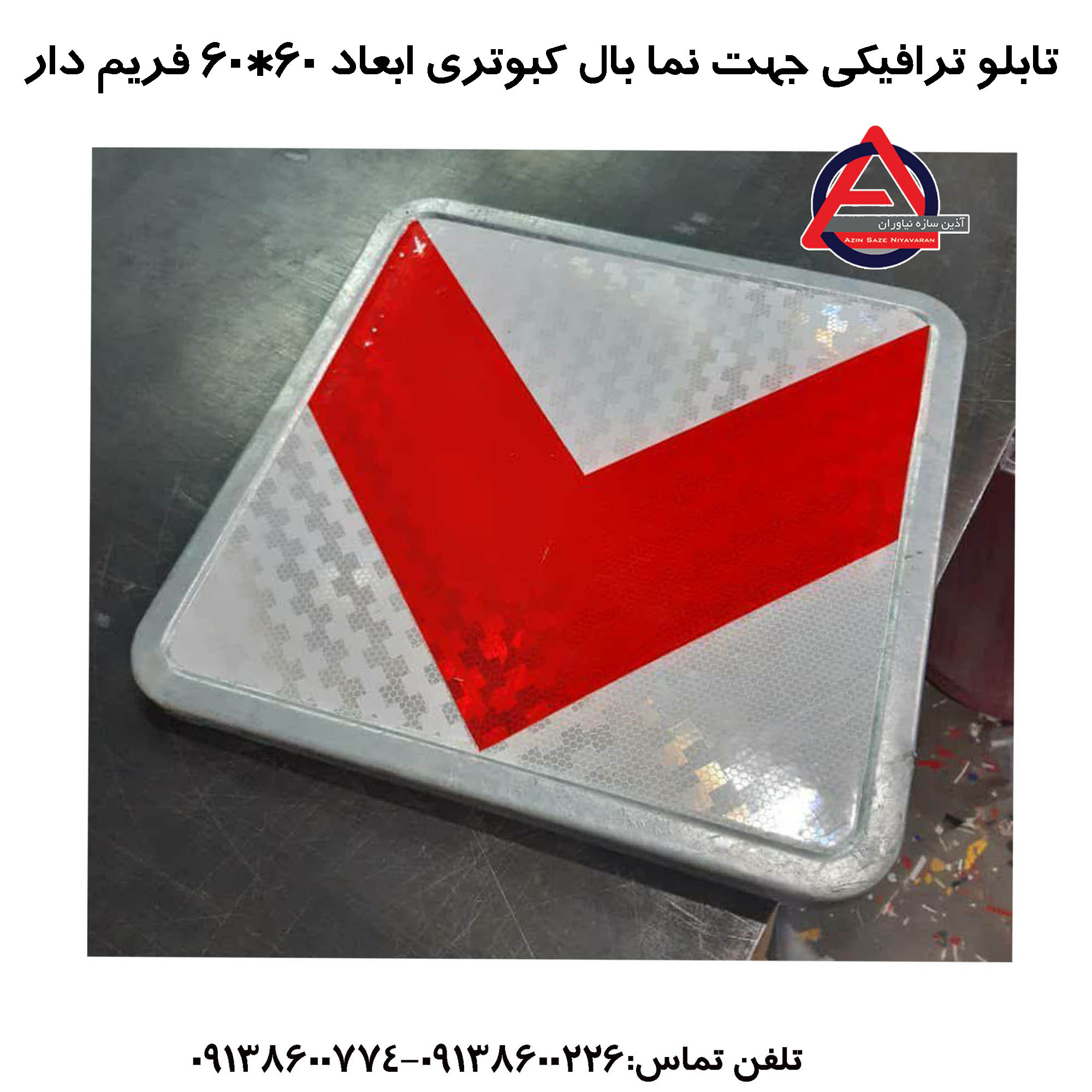 تابلو جهتنما بال کبوتری با ابعاد 60×60 سانتیمتر و طراحی فریمدار، یکی از محصولات تخصصی آذین سازه در دسته تابلوهای هدایت مسیر است. این تابلوها با نمایش جهت حرکت (مانند گردش به راست)، در حاشیه خیابانها و راهها نصب میشوند تا رانندگان را بهصورت واضح و سریع راهنمایی کنند، بهویژه در شرایط نوری ضعیف یا شب.