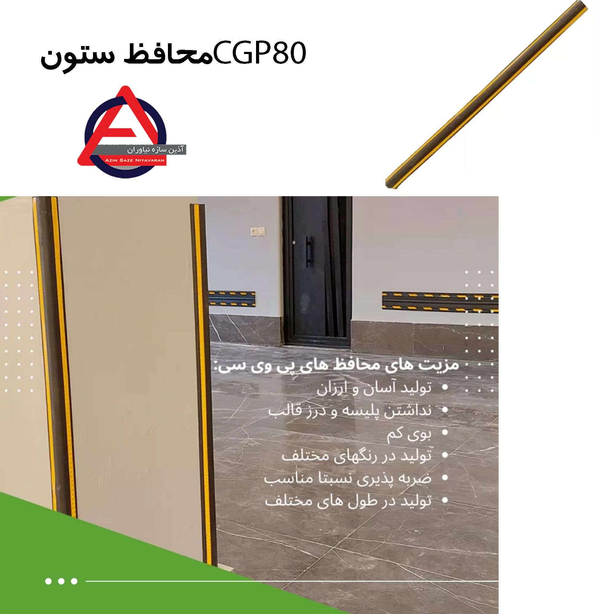 محافظ ستون پارکینگ جنس پی وی سی ارتفاع 80سانتیمتر و عرض 3 و ضخامت1.0