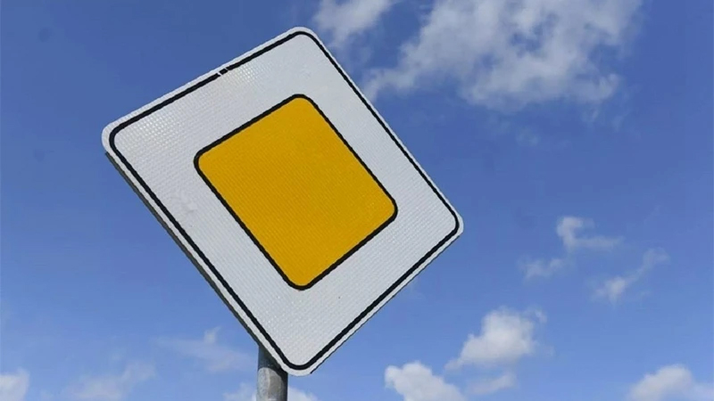 تابلوی خیابان اصلی به شکل یک لوزی سفید رنگ بزرگ است که درون آن یک لوزی زرد رنگ با حاشیه سیاه وجود دارد. داخل لوزی زرد رنگ این تابلوی راهنمایی رانندگی هیچ علامت هشدار دهنده ای وجود ندارد و فقط رنگ زرد آن به معنای حق تقدم عبور است. این تابلو خیابان، معمولا بیشتر در تقاطع هایی نصب می شود که در آن یک مسیر به عنوان خیابان اصلی و پرتردد و یک مسیر به عنوان خیابان فرعی و کم تردد در نظر گرفته شده است.