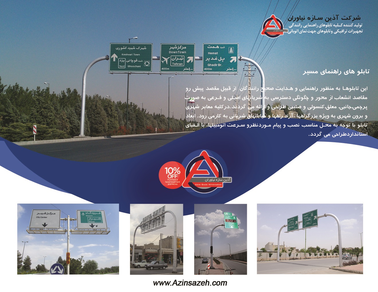 - محل نصب: این تابلوها بر اساس شرایط جوی باید در فاصله های استاندارد نصب شده باشند.در غیر این صورت ممکن است راننده به علت تابلوهای تکراری در مسیر،به آنها اعتنایی نورزد و دچار سانحه شود.