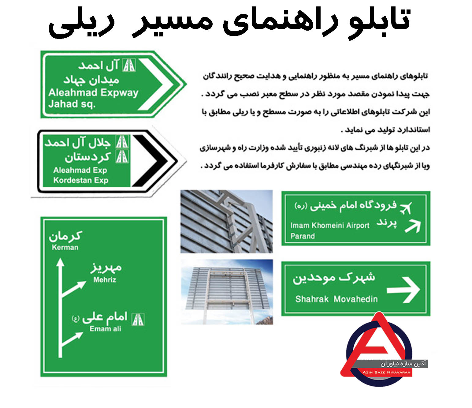 تابلو اطلاعاتی مسیر نما از پر کاربرد ترین نوع تابلو هی ترافیکی مورد استفاده در جاده ها میباشد که به منظور اطلاعات مسیر نصب و مورد استفاده قرار میگیرد.