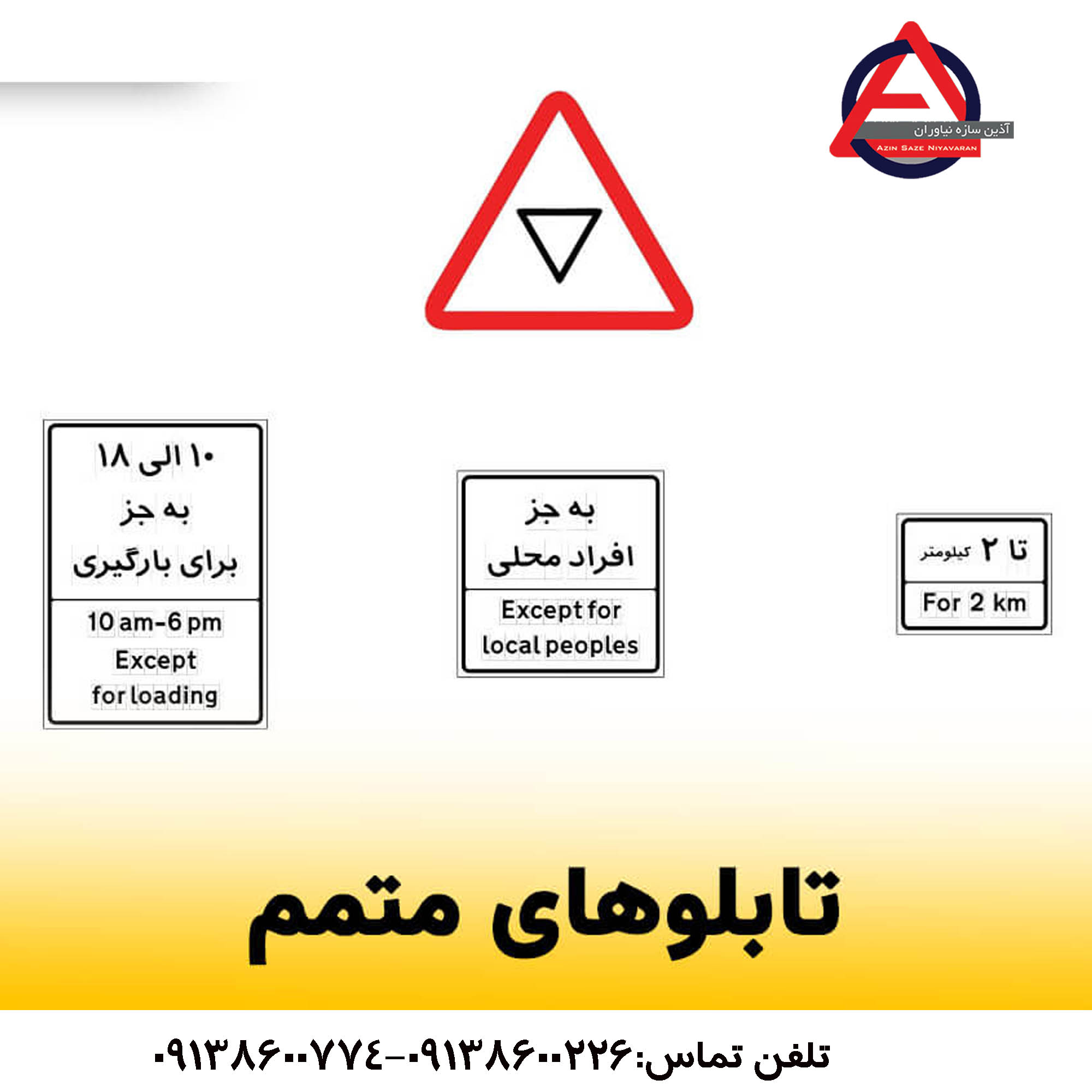 شرکت آذین سازه به عنوان بزرگترین تولید کننده تابلوهای راهنمایی رانندگی در شرق کشور، همواره آماده خدمت رسانی به شما عزیزان در مشهد و دیگر شهرهای کشور است. شما عزیزان می توانید انواع تابلو ترافیکی را بهترین متریال ساخت و قیمت به صورت تکی یا عمده از ما خریداری نمایید.