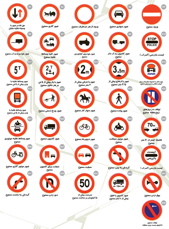 2.تابلوهای ترافیکی بازدارنده یا انتظامی